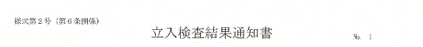 - 文書の名称: 「立入検査結果通知書」と記載されていることを確認します 。これが、検査に基づいた正式な指摘であること示しています。