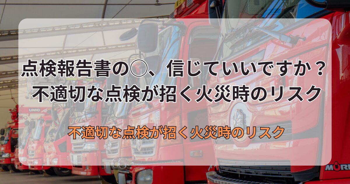 点検報告書に「◯」がついていても、実際には適切な点検が行われていなかったり、火災時に消防設備が機能しなかったりするケースがあるのです。